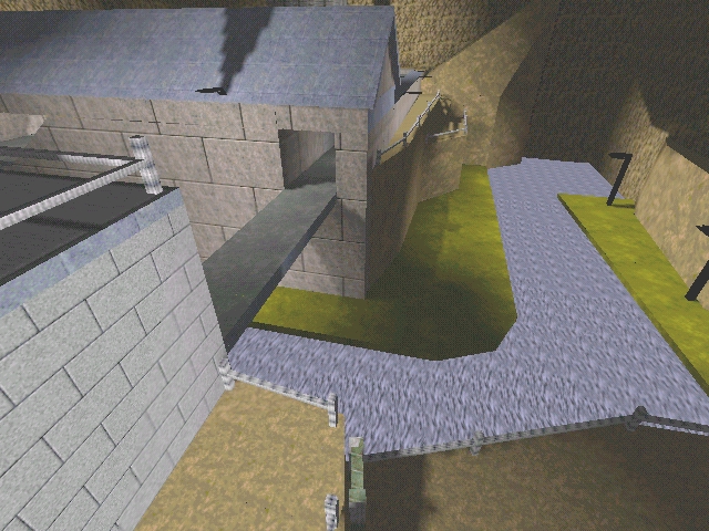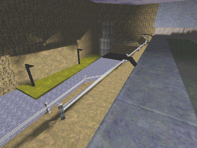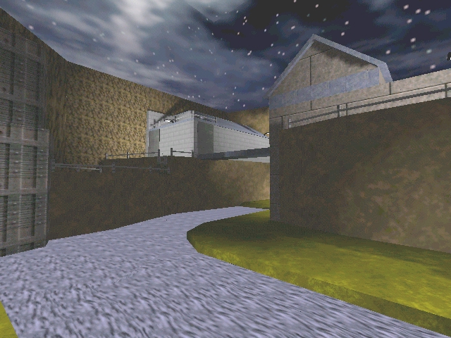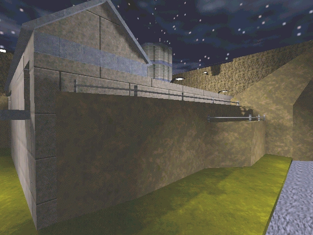 In the center of the main building you will see a large generator. This generator will turn as a rotating brush. The target will be located within this generator, which will have two enterances. As the Generator rotates, the entries will be alternatively covered and uncovered by the surrounding walls, creating the possibility of the enemy offense being temporarily trapped within the generator, until the entryway is aligned with the opening. The enemy will be able to shut down the generator, giving their team points and causing a temporary power shortage throughout the base. This shortage will cause the lights to go out, and possibly shutdown the team's ammo supply (depending on how gameply is effected).